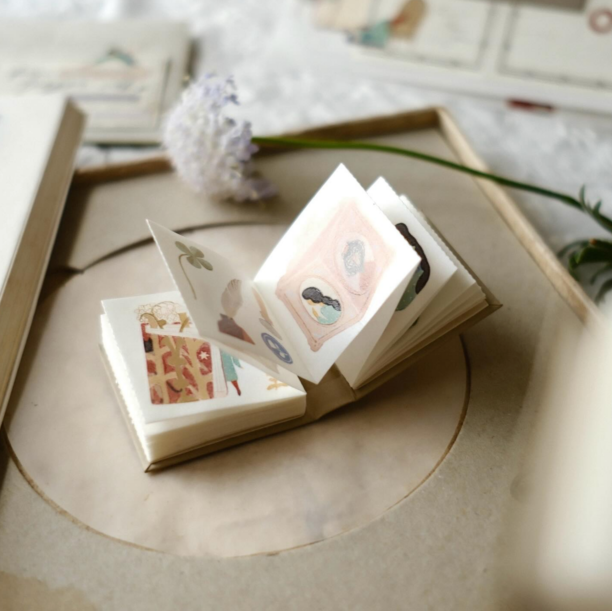 The book includes 40 pages (2 full cycles), with each cycle spanning 80 cm—packed with an abundance of adorable mini designs. Made with luxurious Japanese washi material and elegantly bound for a polished, premium finish.